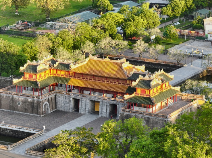 Kinh thành Huế mang vẻ đẹp trầm mặc, cổ kính, là nơi lưu giữ trọn vẹn dấu ấn vàng son của triều Nguyễn giữa lòng miền Trung thơ mộng. Những bức tường thành rêu phong, Ngọ Môn uy nghi, điện Thái Hòa trang trọng gợi mở một không gian lịch sử sâu lắng và đầy tự hào. Dạo bước trong Kinh thành, du khách như lạc vào dòng chảy thời gian, cảm nhận nhịp sống cung đình xưa hòa quyện cùng vẻ đẹp thanh bình của sông Hương, núi Ngự, tạo nên sức hút rất riêng cho Huế.